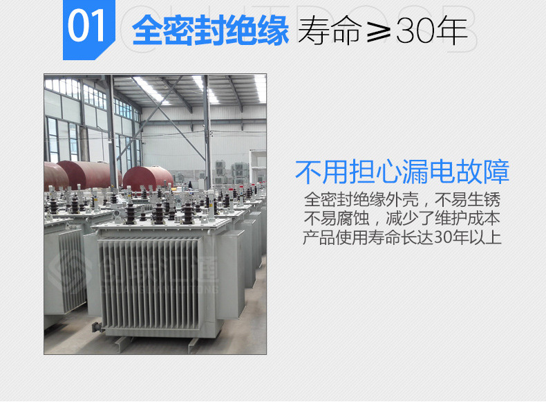 4.變壓器為全密封結(jié)構(gòu),延長(zhǎng)使用壽命,免吊芯,免維護(hù)。